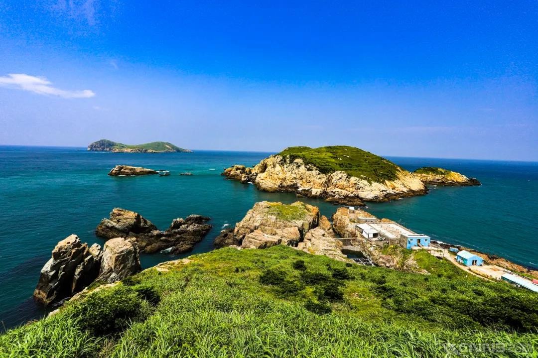 云雾轻盈弥漫,岛屿处、氤氲涌现。环绕禅庵夫子殿。紫瑞荡、瀑流如练。秀色令人陶醉,翘首纵情兴叹。